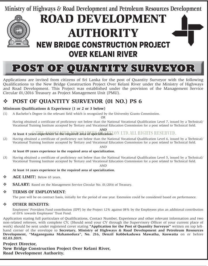 Senior quantity surveyor south west 40 911 56 225 closes.